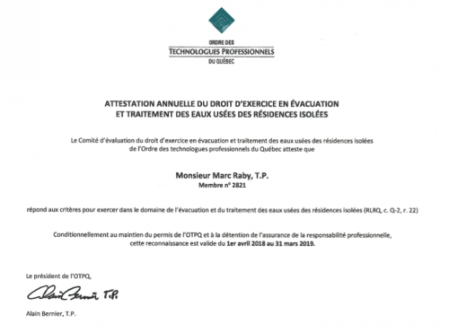 Technologue (DEC) en génie civil avec une attestation d'études collégiales (AEC) en assainissement des eaux usées (Q-2, r.22), M. RABY possède plus de 25 ans d'expérience dans le domaine.